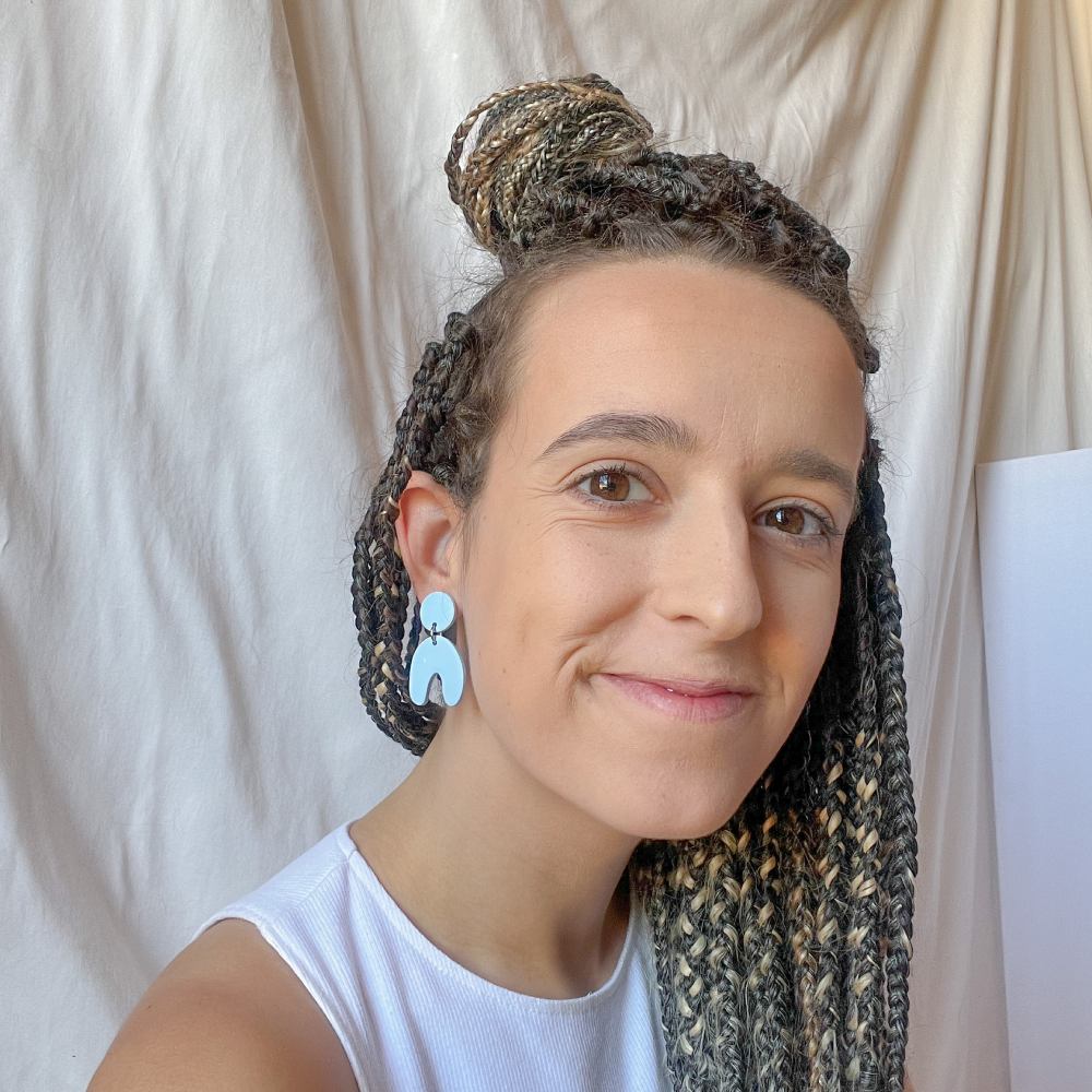 Pendiente detalles azul y naranja