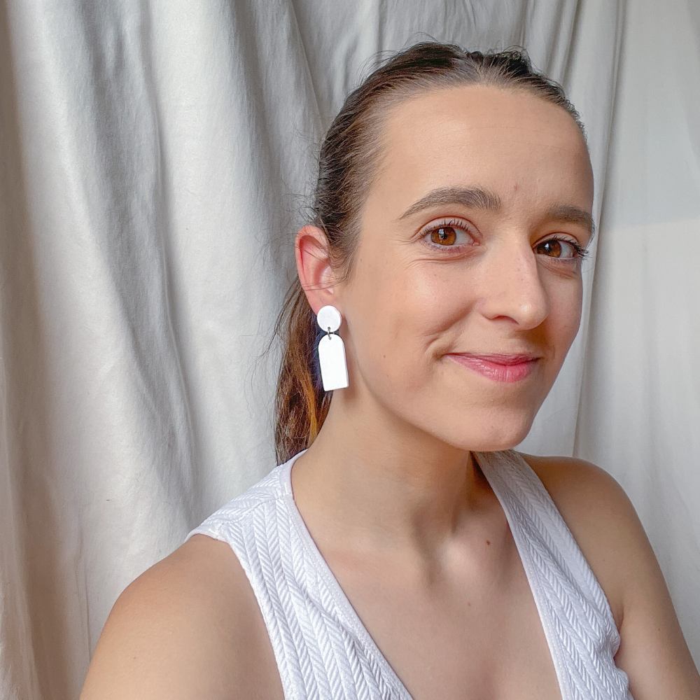Pendiente cuadrado colgante blanco y rojo