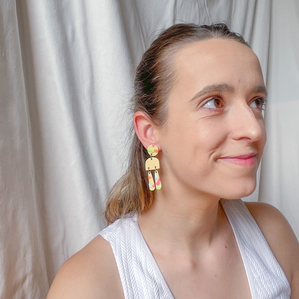 Pendientes circulares tonos rojos y blancos