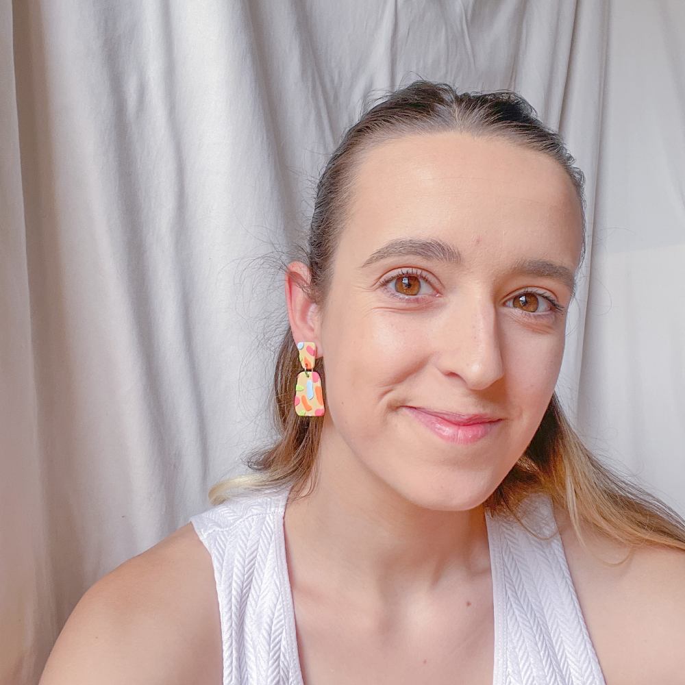 Pendiente cuadrado colgante blanco y rojo